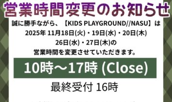 KIDS PLAYGROUND//NASU営業時間変更のお知らせ